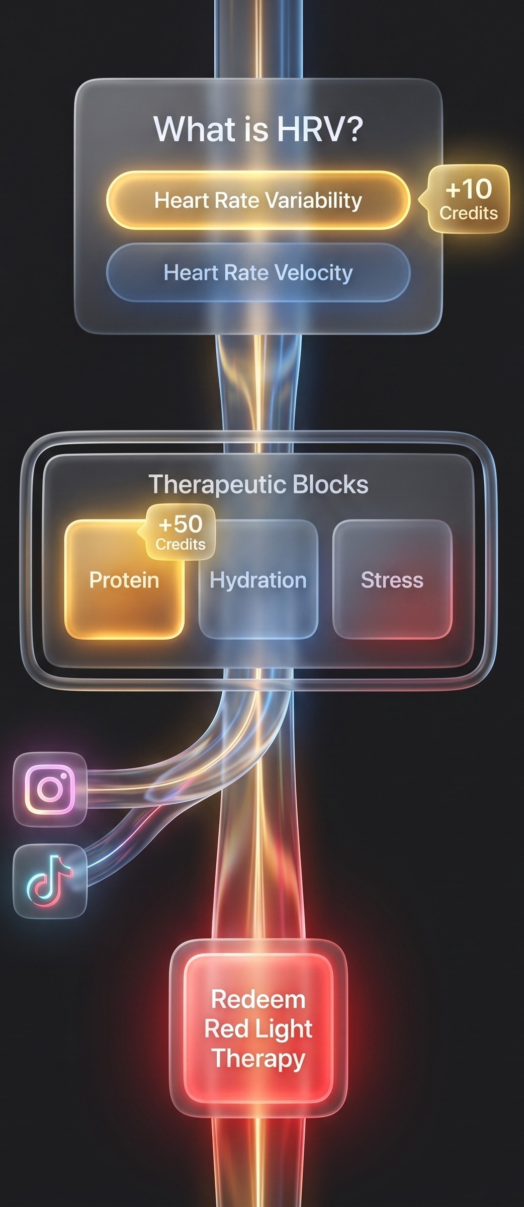 Real World Redemption: Elena can take her earned digital credits back into the physical world. She can seamlessly redeem them at her wellness clinic for premium clinical recovery services like an NAD+ IV drip, red light therapy, or a hyperbaric oxygen session.